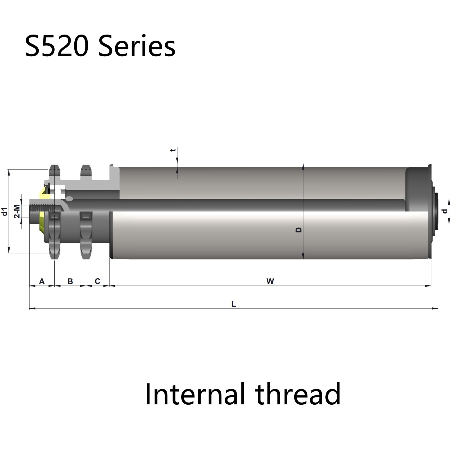Tube Dia(D)Tube Thickness(t)BearingShaft Dia(d)SprocketSteel zinc platedStainless steel